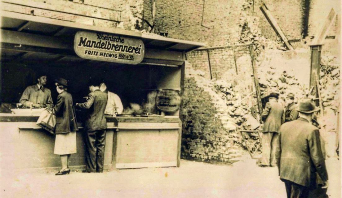 Der Großvater (links im Bild) im Jahre 1946 kurz nach dem Zweiten Weltkrieg mit einem Verkaufsstand auf der Schildergasse in Köln.